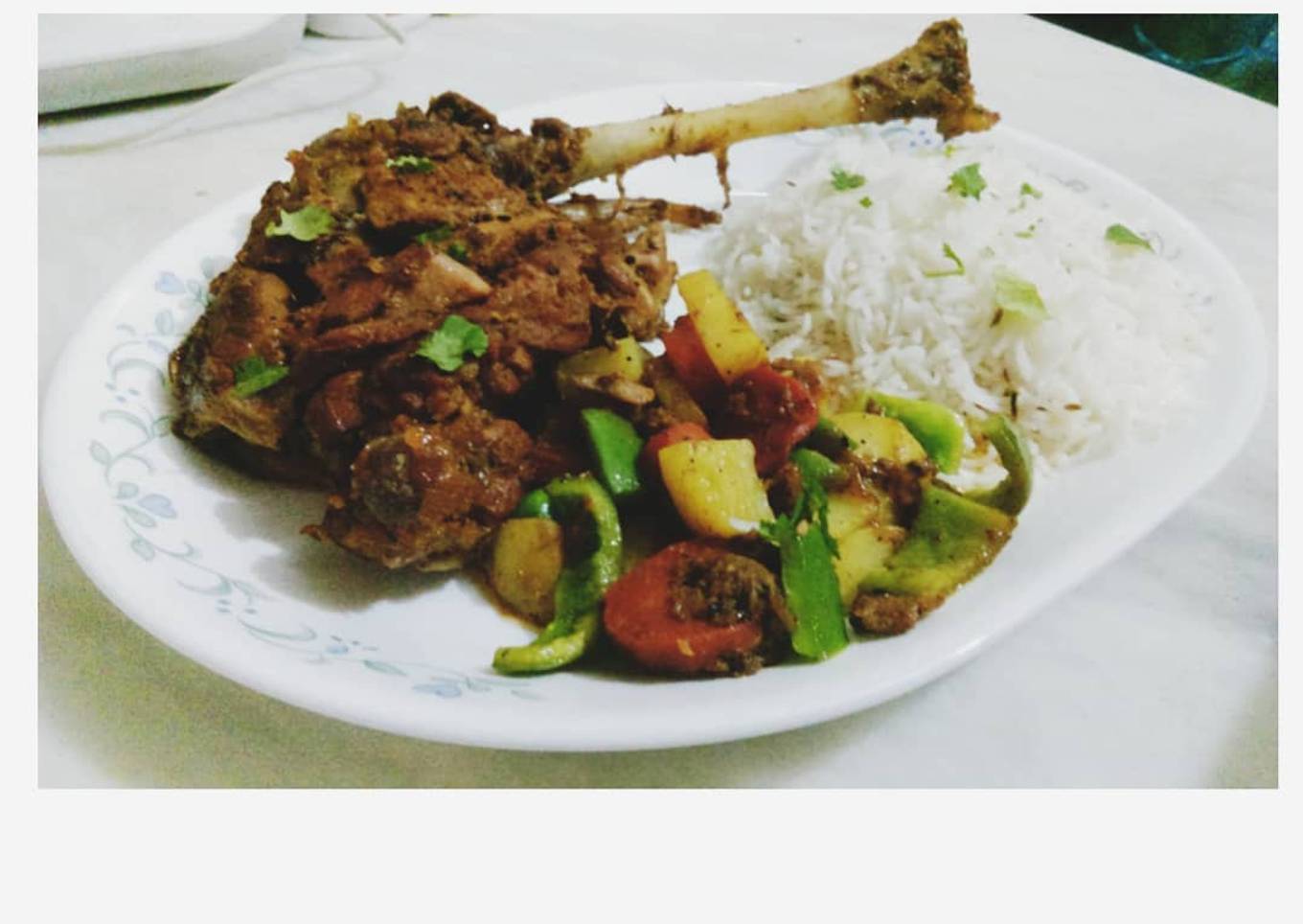 This very easy and yummy combo of mutton roast and vegetables. Give it a try.