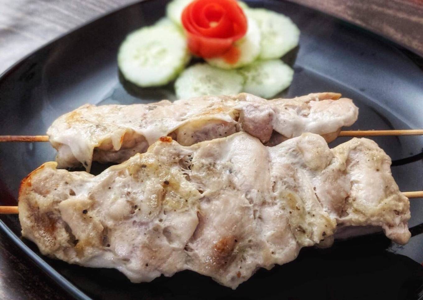 - Soak some bamboo skewers into water for 30 mins. Now arrange all marinated chicken into the skewers.